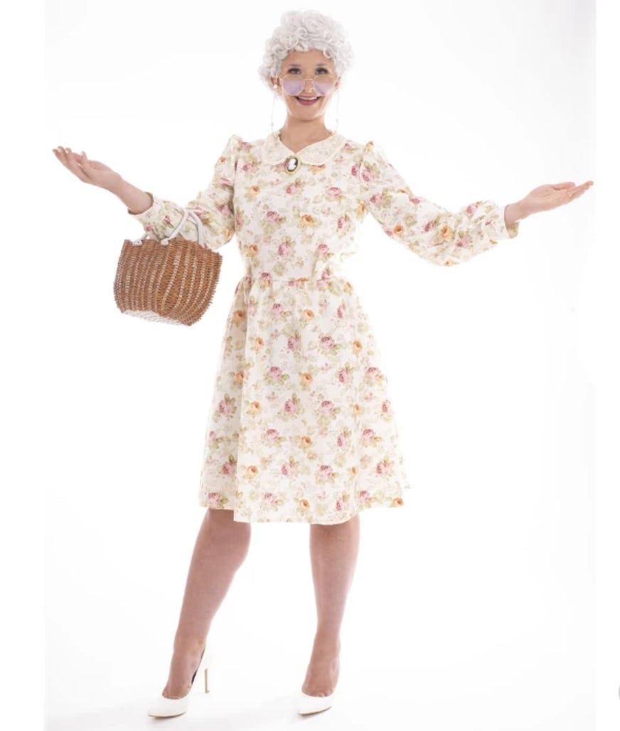 Last but certainly not least is Sophia's costume. This one comes with a floral print dress featuring a cameo broach and (how could it NOT comes with this) a pair of glasses with a faux pearl glasses chain.