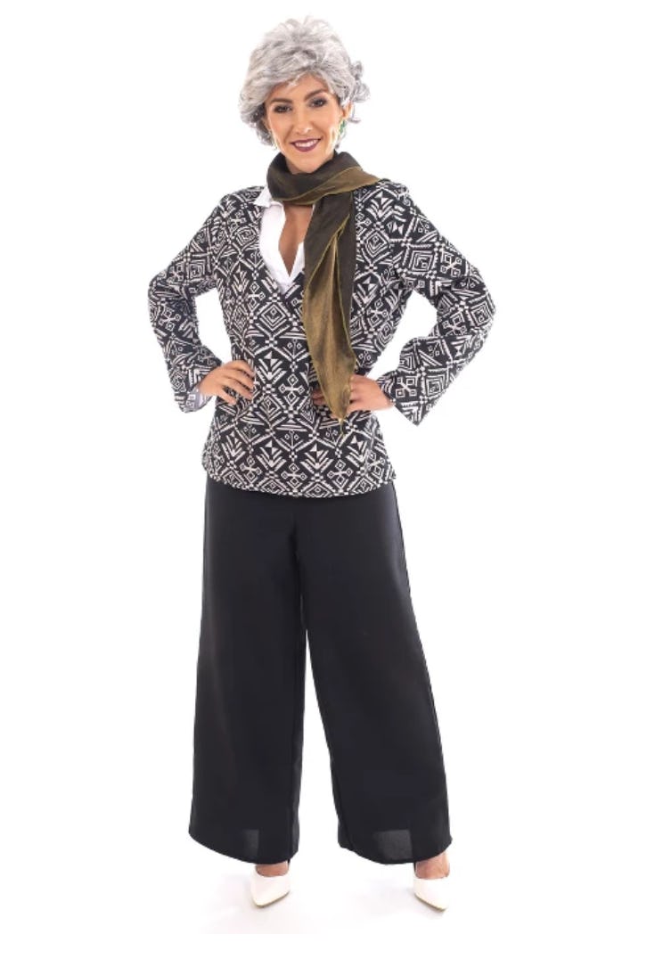 Oh, Blanche. I'm not sure you're ready for this jelly. This costume includes a red, sleeveless, v-neck jumpsuit (of course). It also comes with a floral patterned blazer, with shoulder pads, cause duh.And let's not forget the gold costume jewelry clip-on earrings and a costume jewelry necklace.